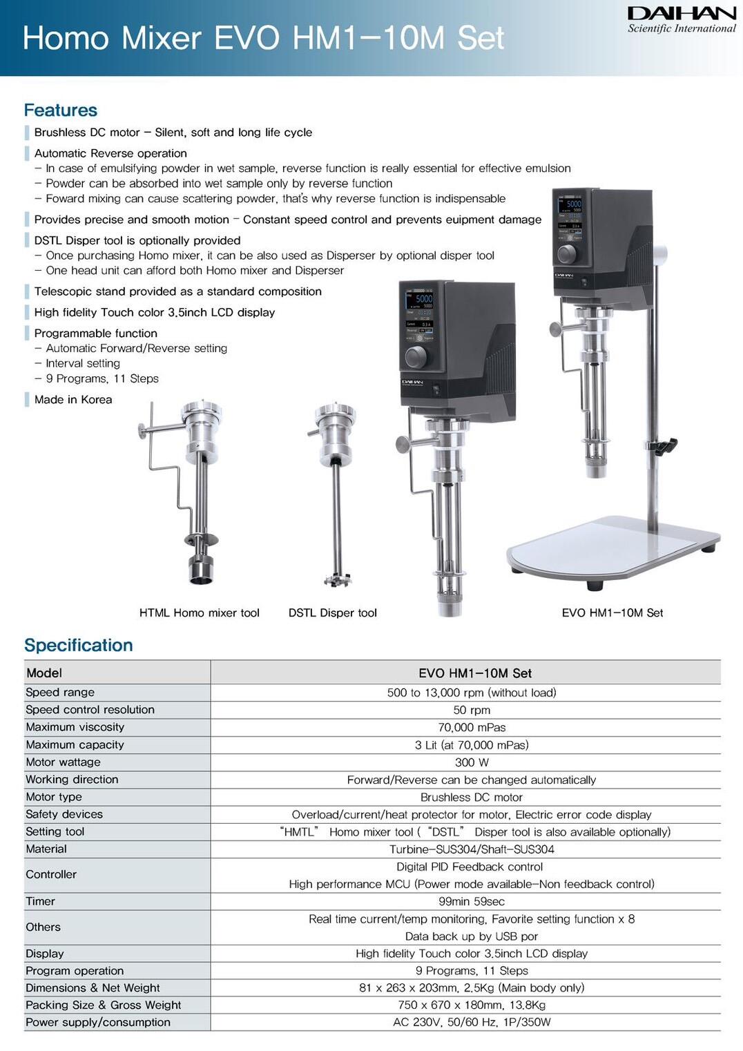 DAIHAN數位均質攪拌器 HM1 是一款尖端實驗室攪拌設備,專為均質化處理各種物質而設計。憑藉其廣泛的轉速範圍和先進的數位反饋控制系統,該攪拌器能夠提供可靠且精確的混合效果,特別適合科學研究和工業應用。直觀的彩色觸控LCD介面,讓操作和監控變得更加簡單和高效,確保每次操作的穩定性